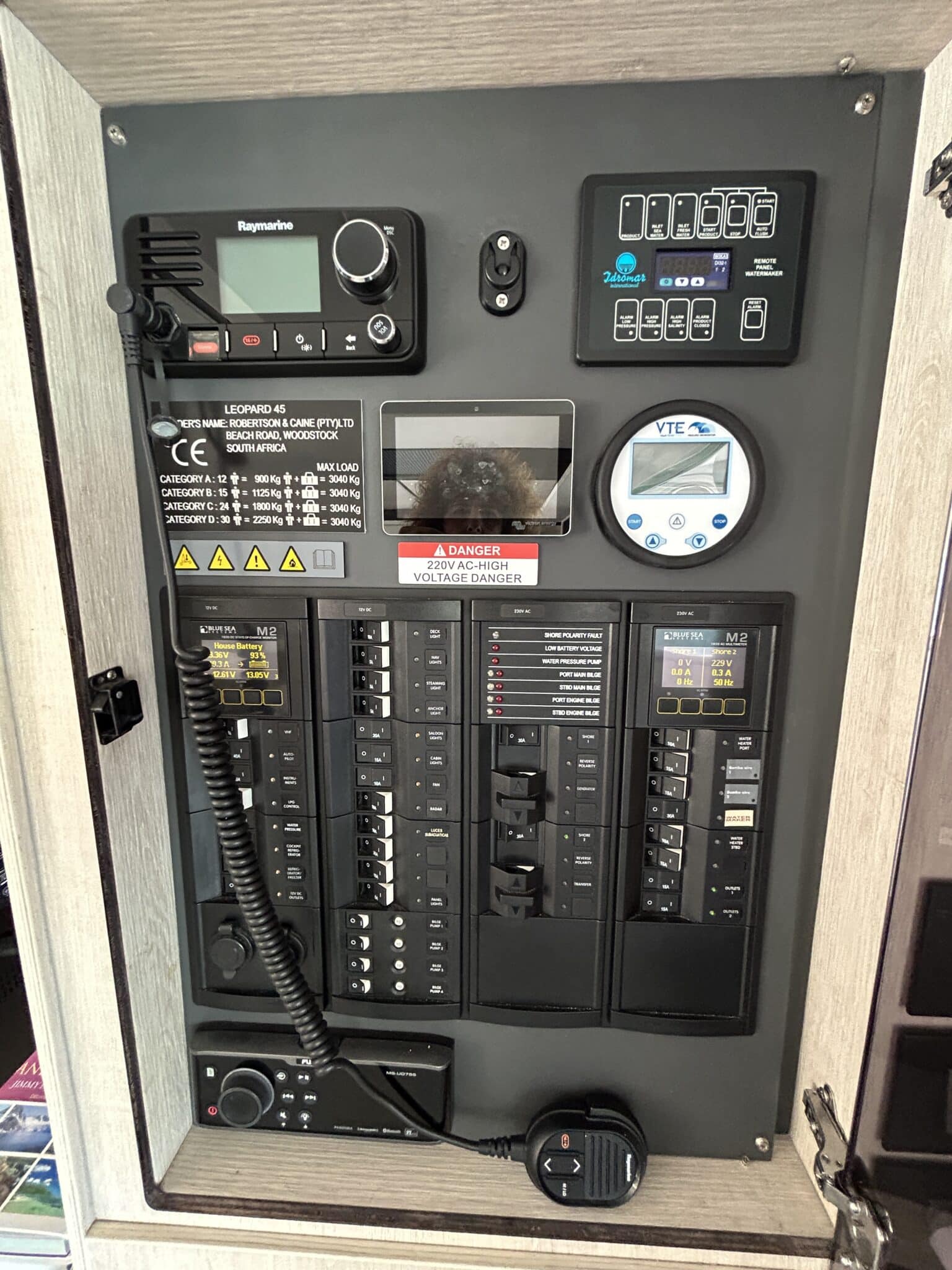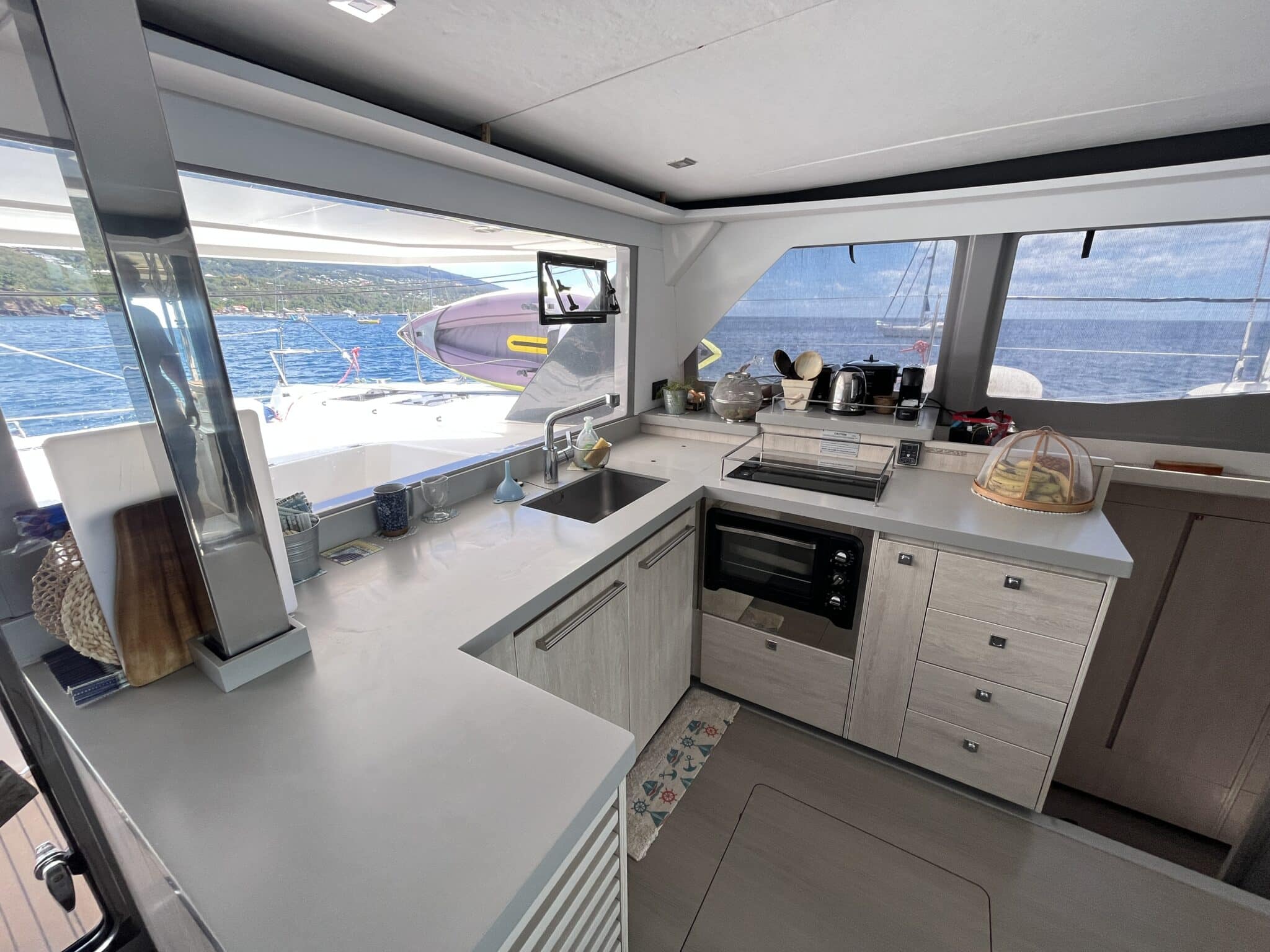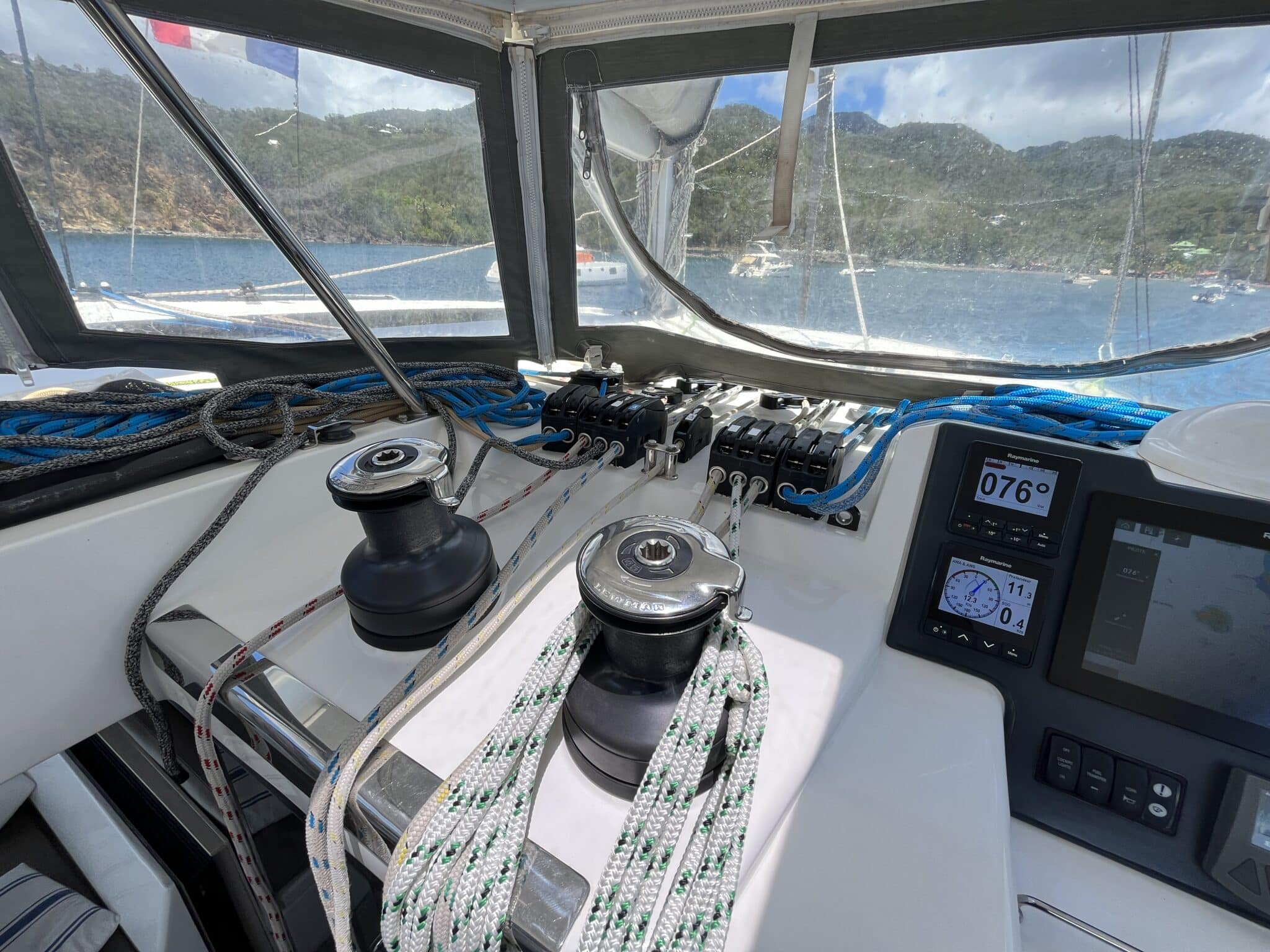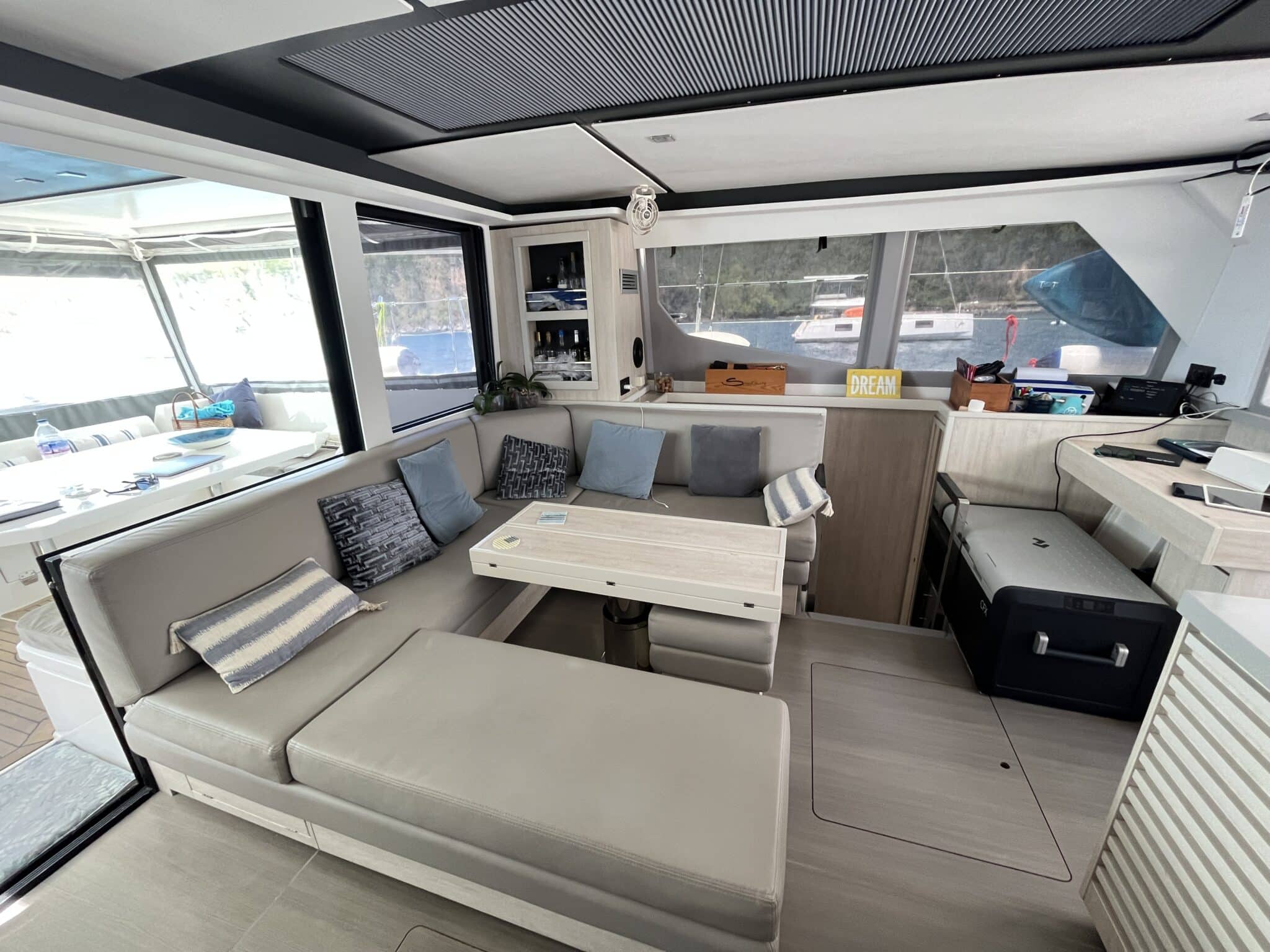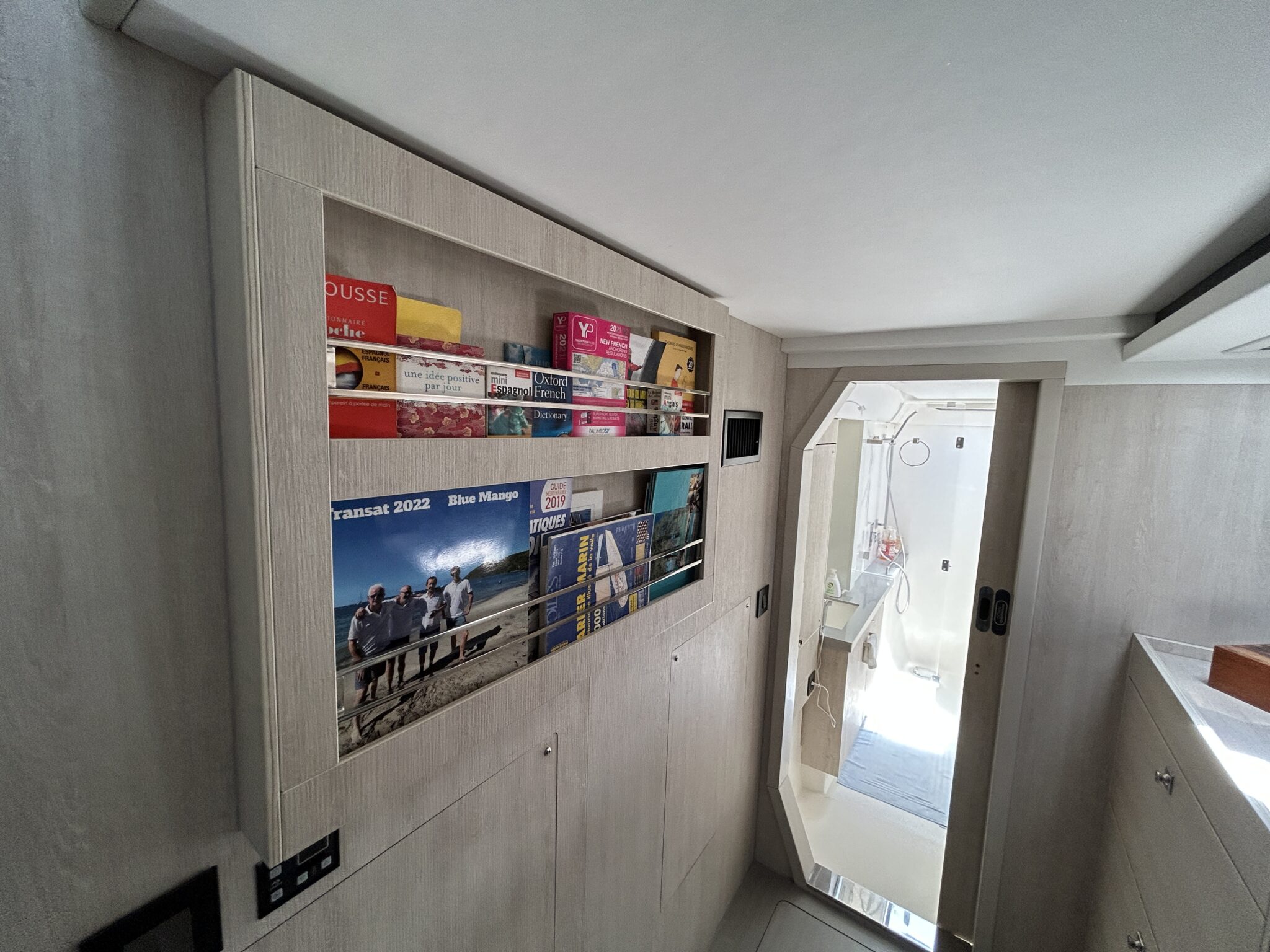 Owner’s version, saloon , front and rear cockpits, Full electronics – YANMAR 45 Hp engines – Genset 220 V  9000 W – Electric Winches – Lithium Batteries – Solar Panels – Water Maker – Air Conditioning – Dinghy + 30 Hp OB with electric start – Kayak – Paddle – Electric Bike – Electric Scooter -StarLink – STARLINK   Ideal for World Tour !