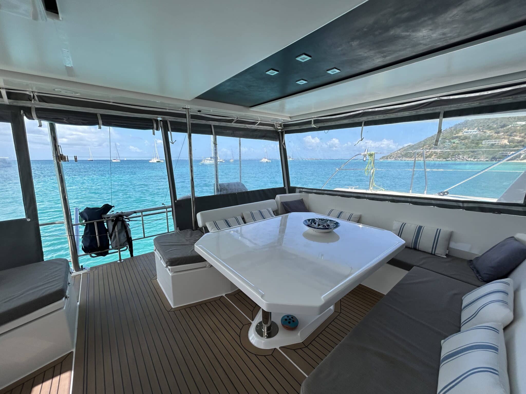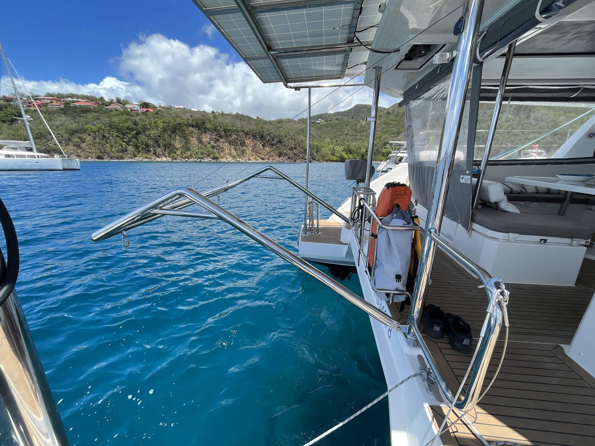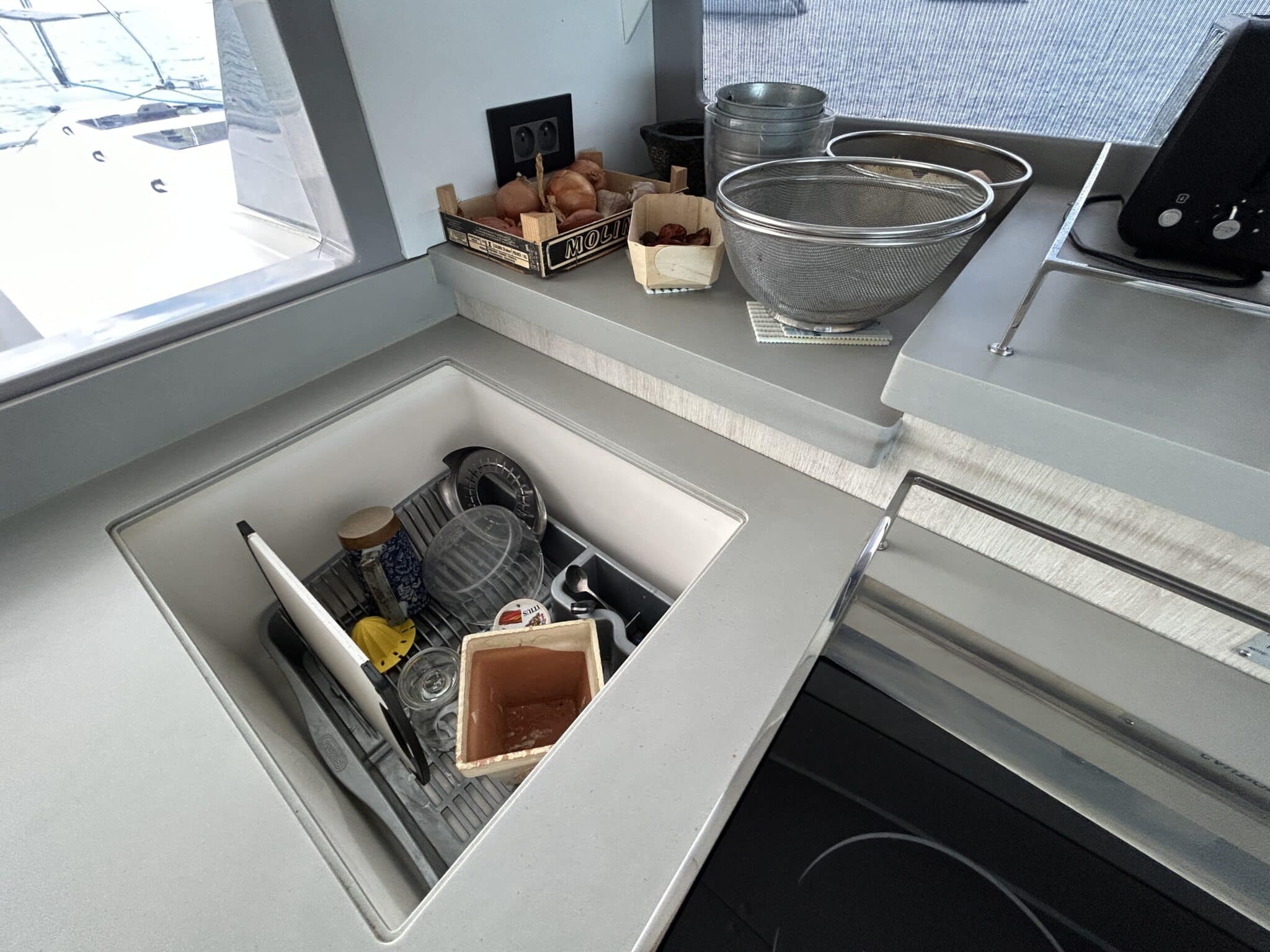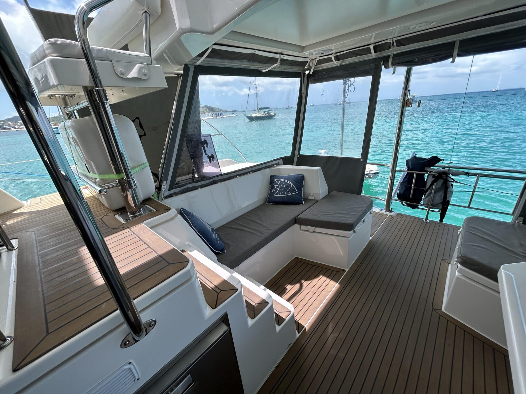 Owner’s version, saloon , front and rear cockpits, Full electronics – YANMAR 45 Hp engines – Genset 220 V  9000 W – Electric Winches – Lithium Batteries – Solar Panels – Water Maker – Air Conditioning – Dinghy + 30 Hp OB with electric start – Kayak – Paddle – Electric Bike – Electric Scooter -StarLink – STARLINK   Ideal for World Tour !