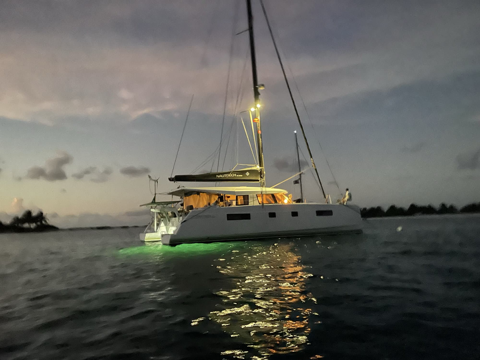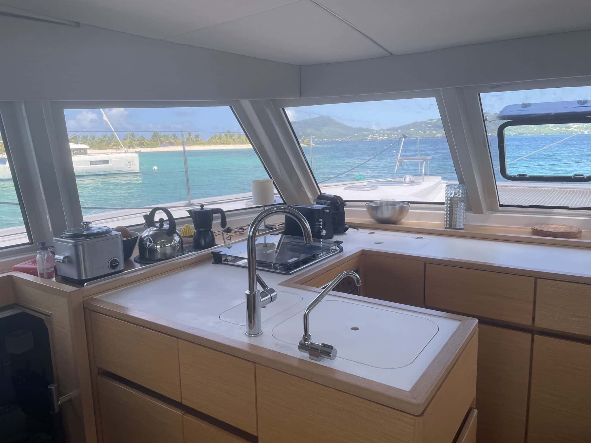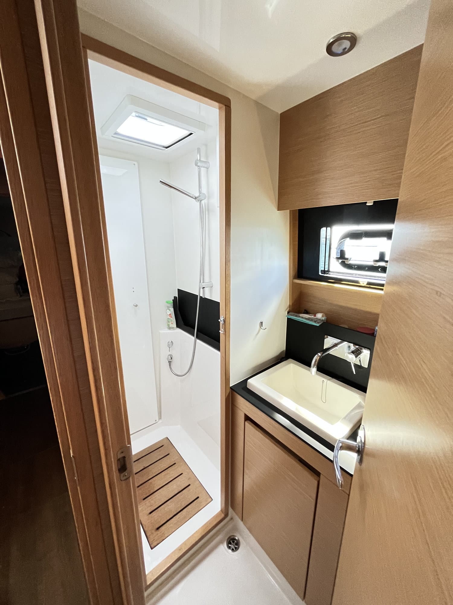 Finally, a high-end B&W HIFI system, a Plancha and a dinghy with a 20 HP outboard engine make this boat the ideal catamaran for a long-distance program.