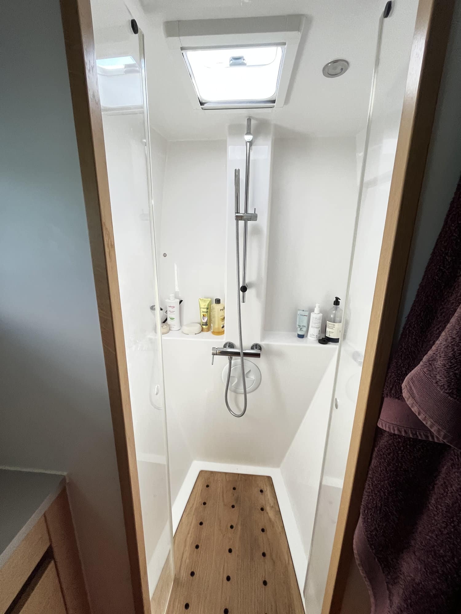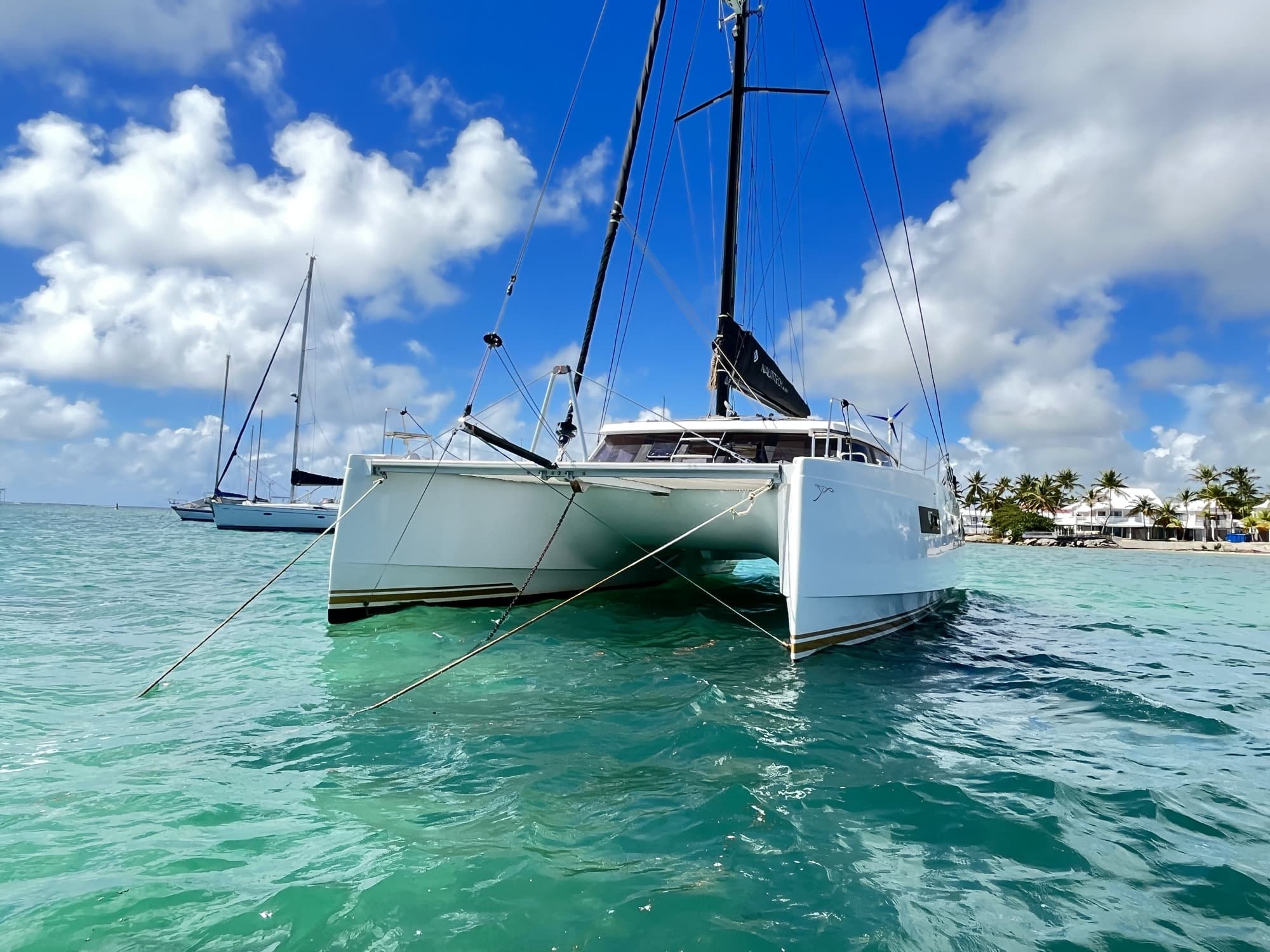 Owner Version 3 Cabins – 3 Heads – 2 * 50 Hp Volvo – Full electronics B&G – Solar pannels 1260 W – Lithium batteries – WaterMaker – Heating – HB Dinghy + 20 HP OB – Hydranet Sails .1 st Owner never been chartered