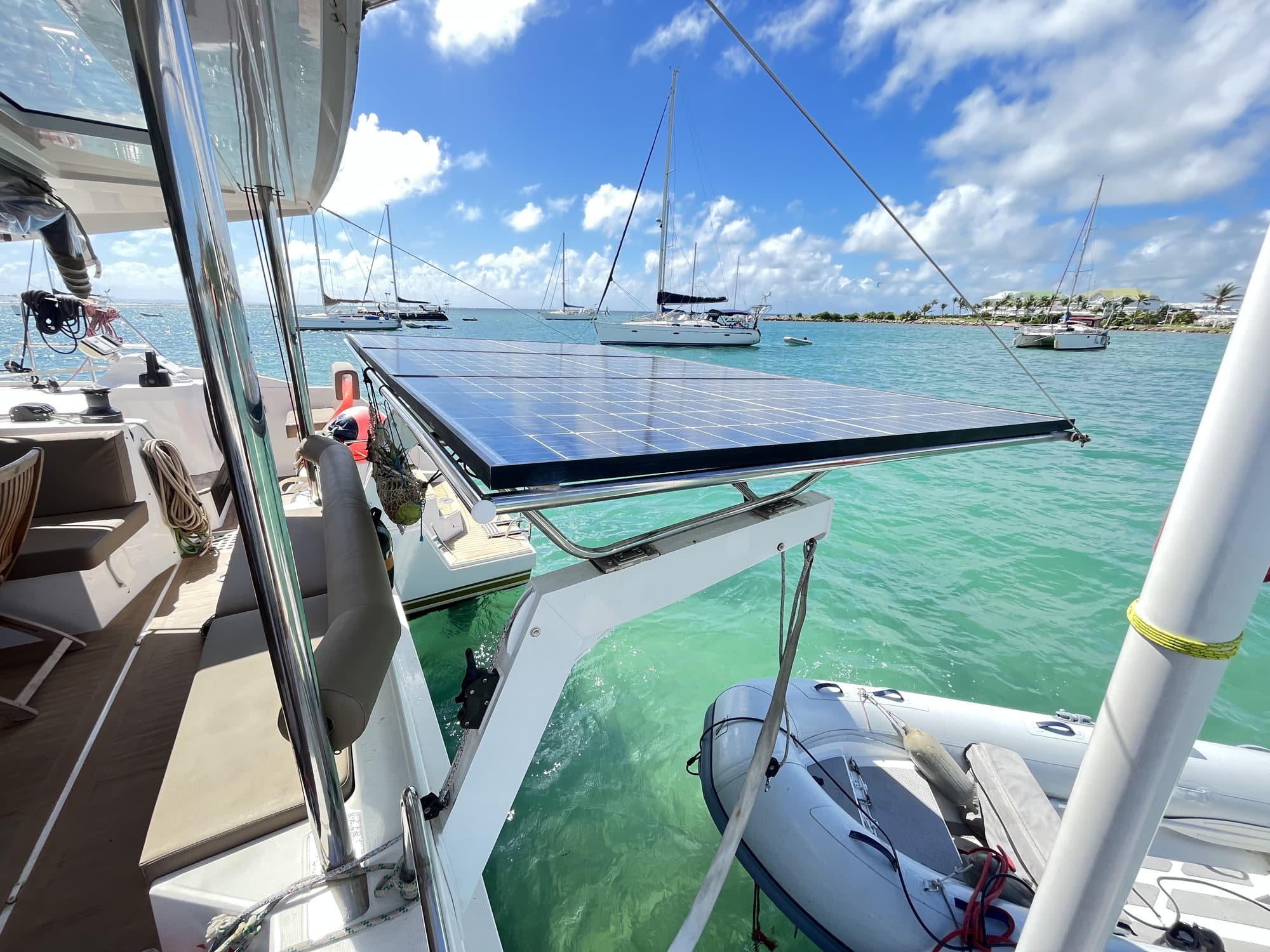 It is a Black edition with a large black mast and high performance Hydranet sails as well as a gennaker and a spinnaker. The boat is equipped with lithium iron phosphate batteries that offer security and exceptional autonomy and more than 1200 W of solar panels.