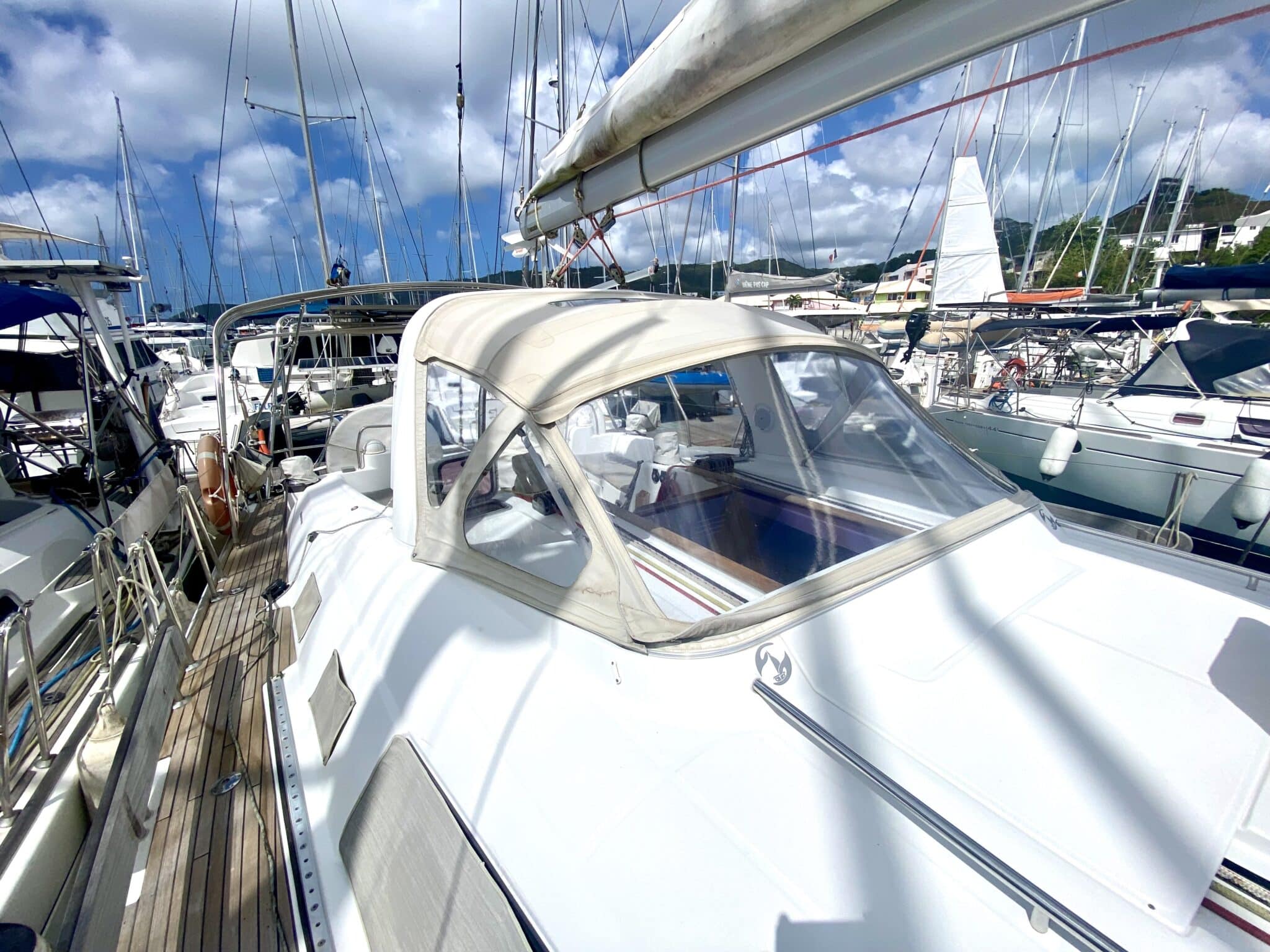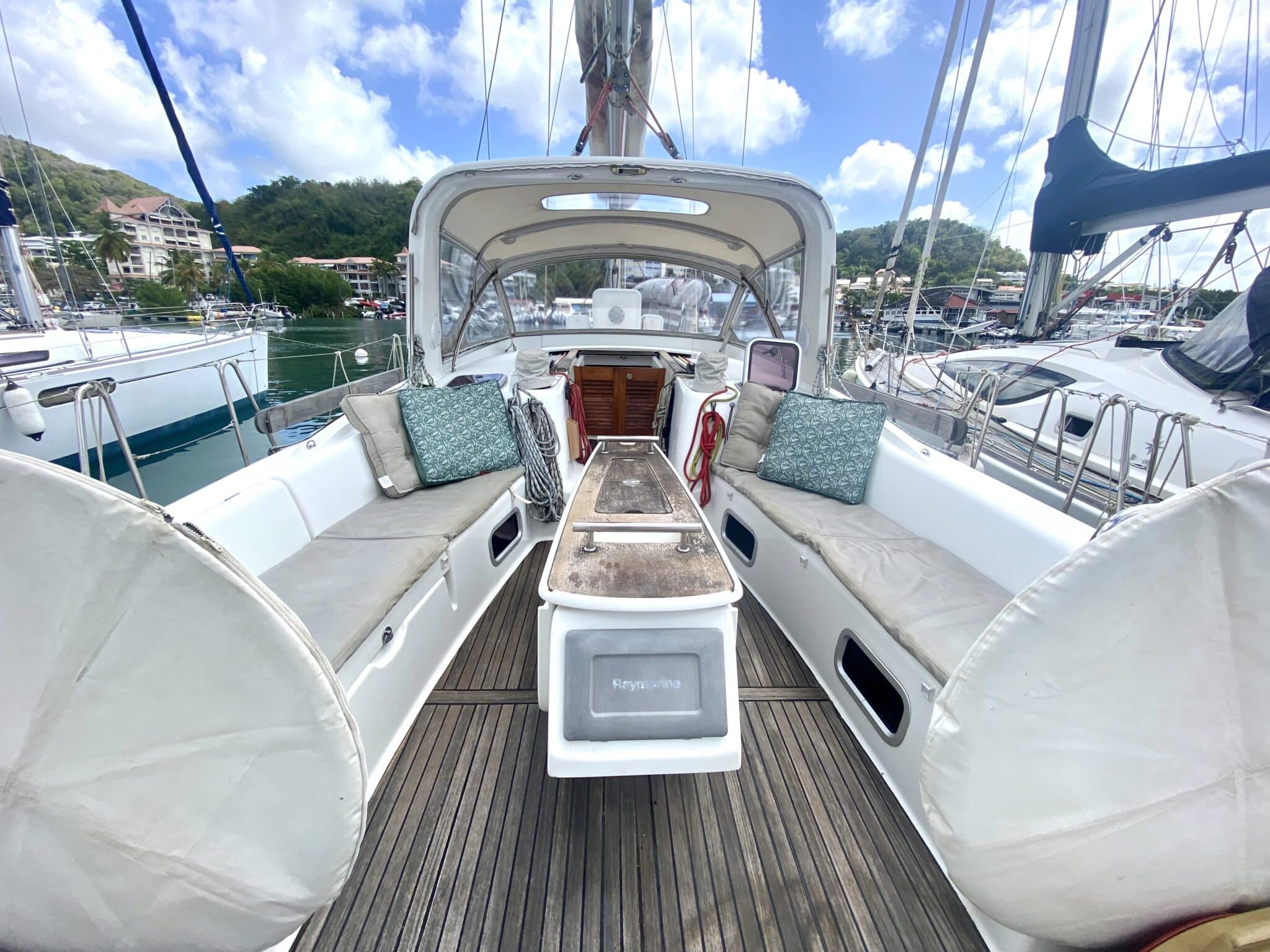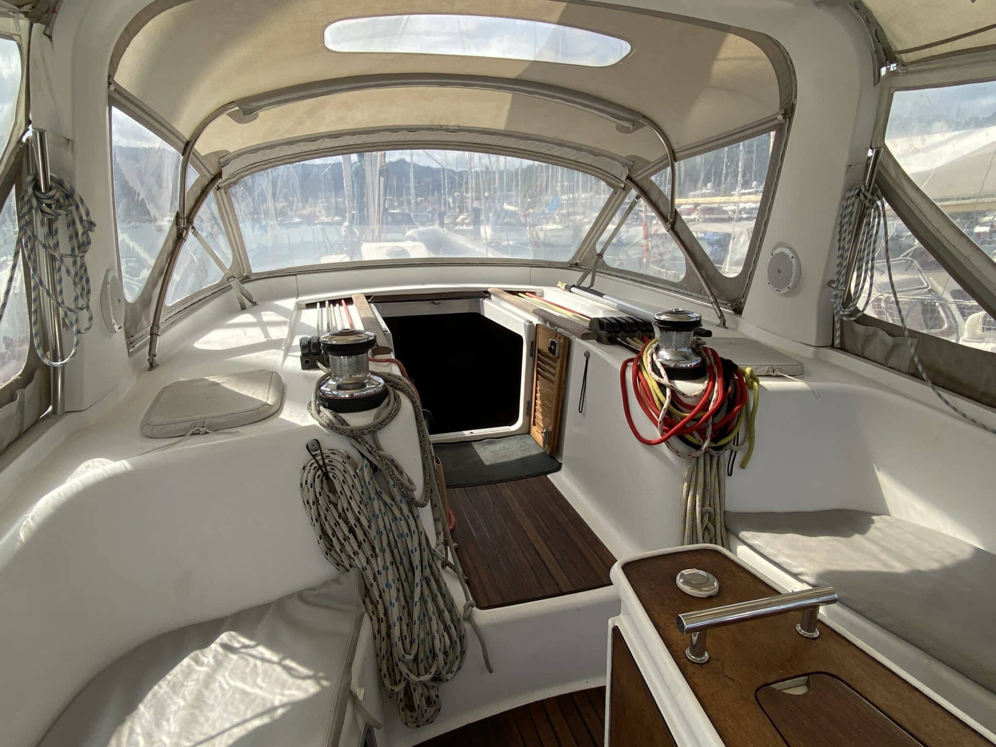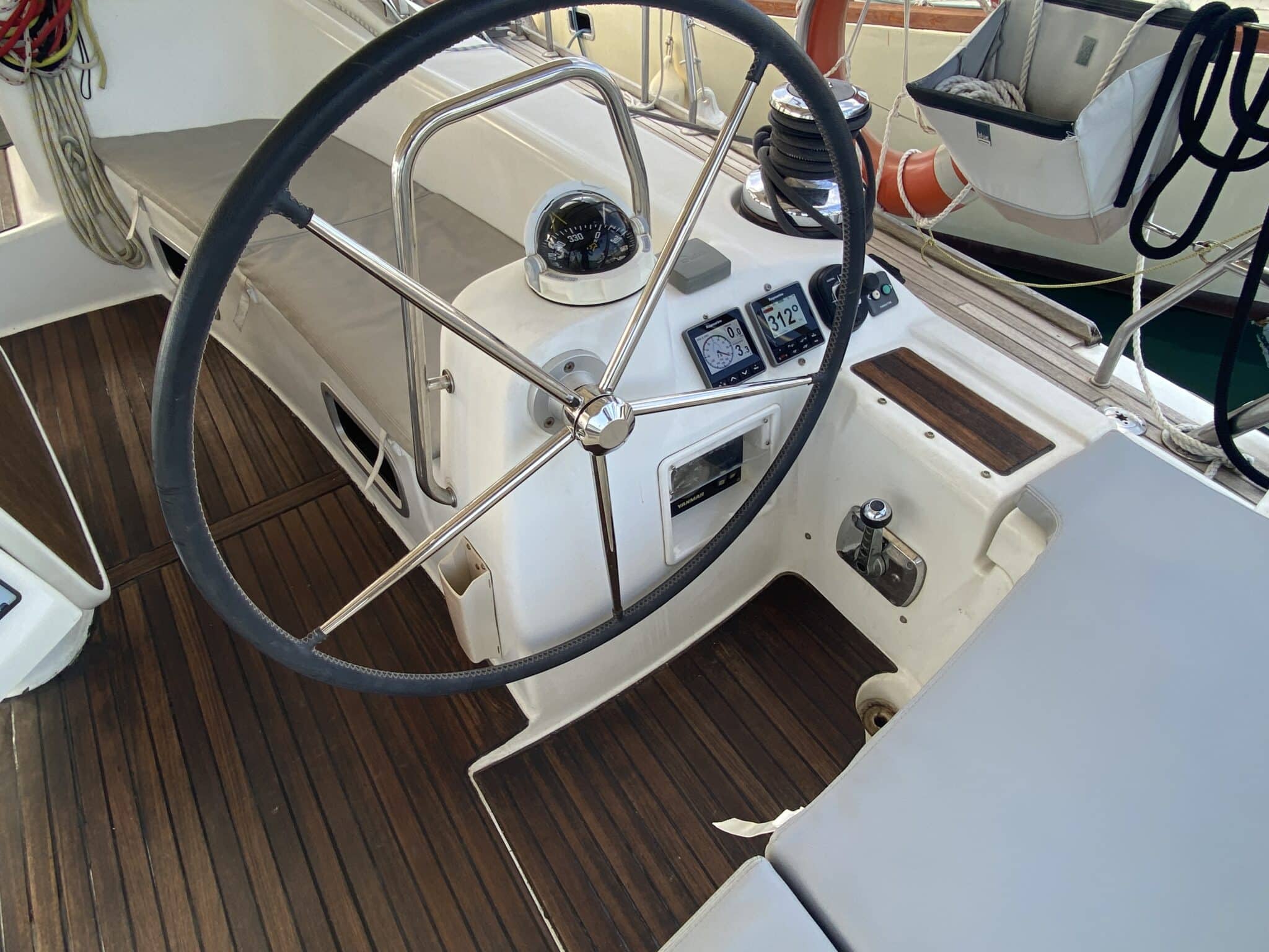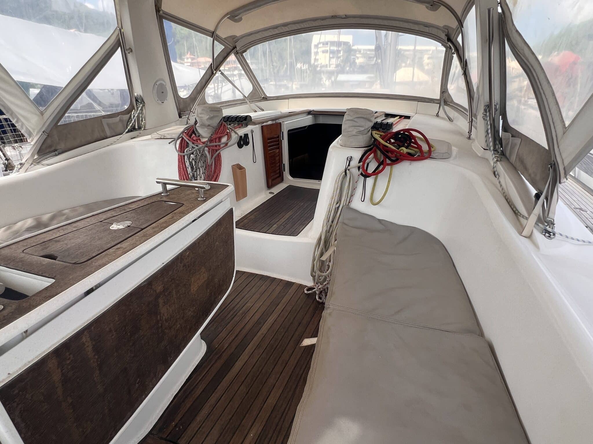 Teak deck and cockpit.