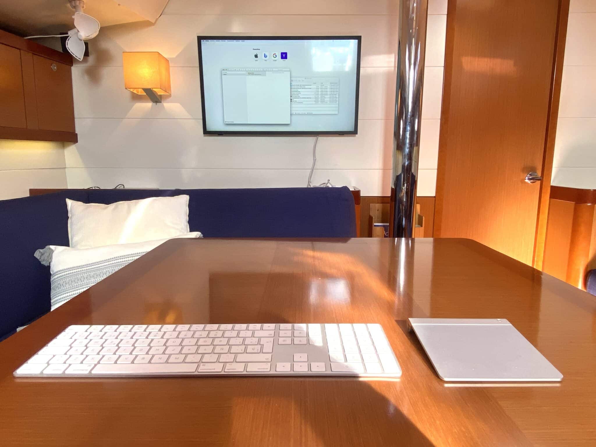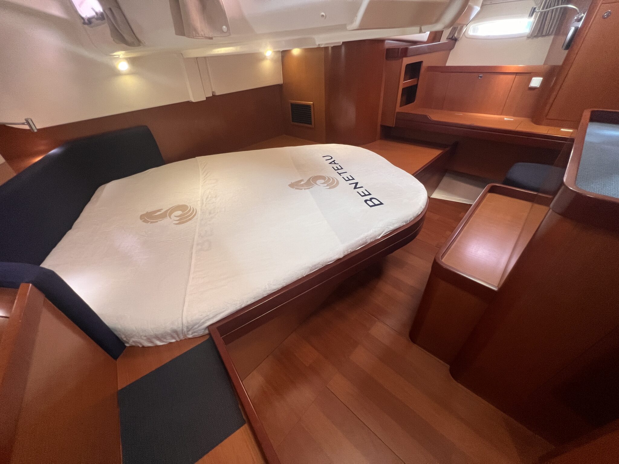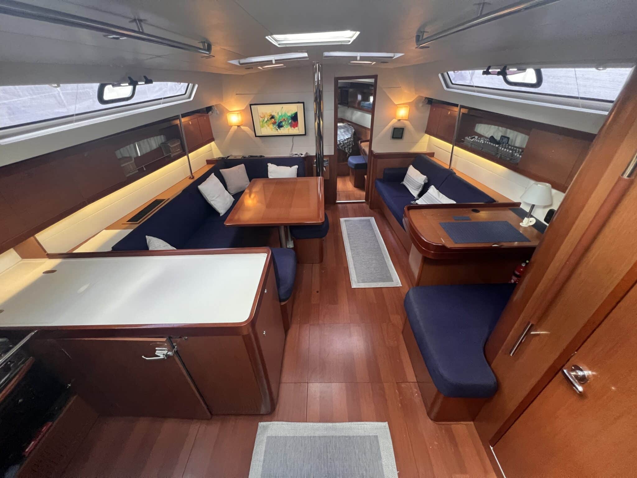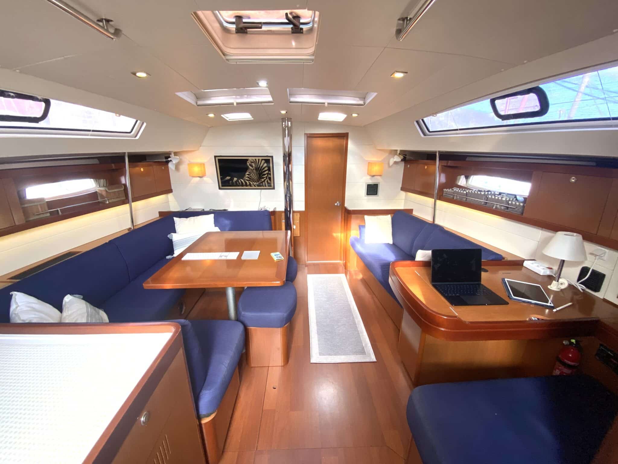 Spacious saloon with chart table.