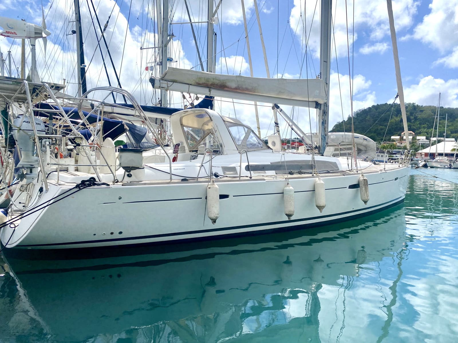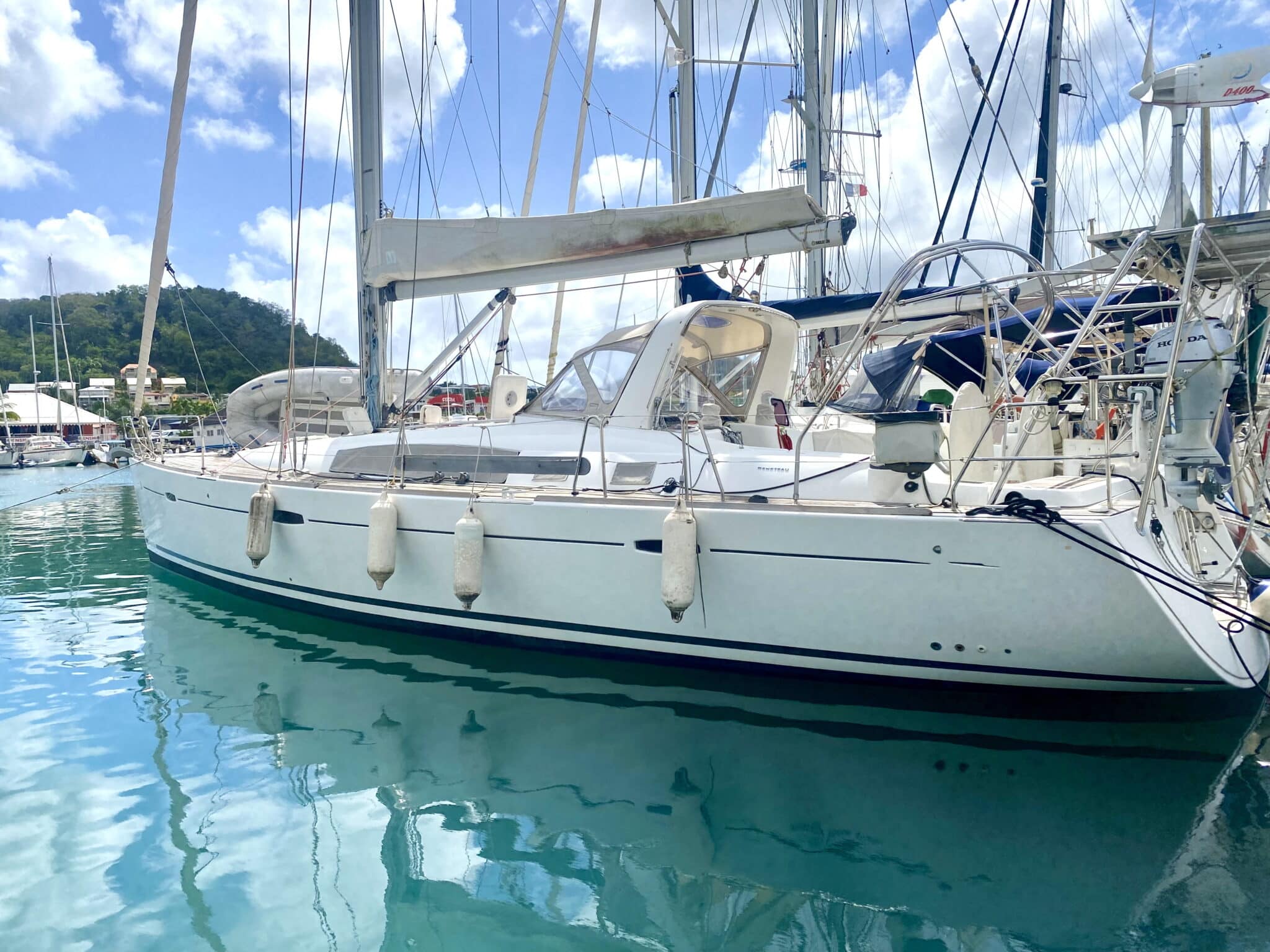 Full options for navigation and life onboard: Dock & Go Version, Air conditioning, generator, water maker, roll bar, davits, outboard engine…