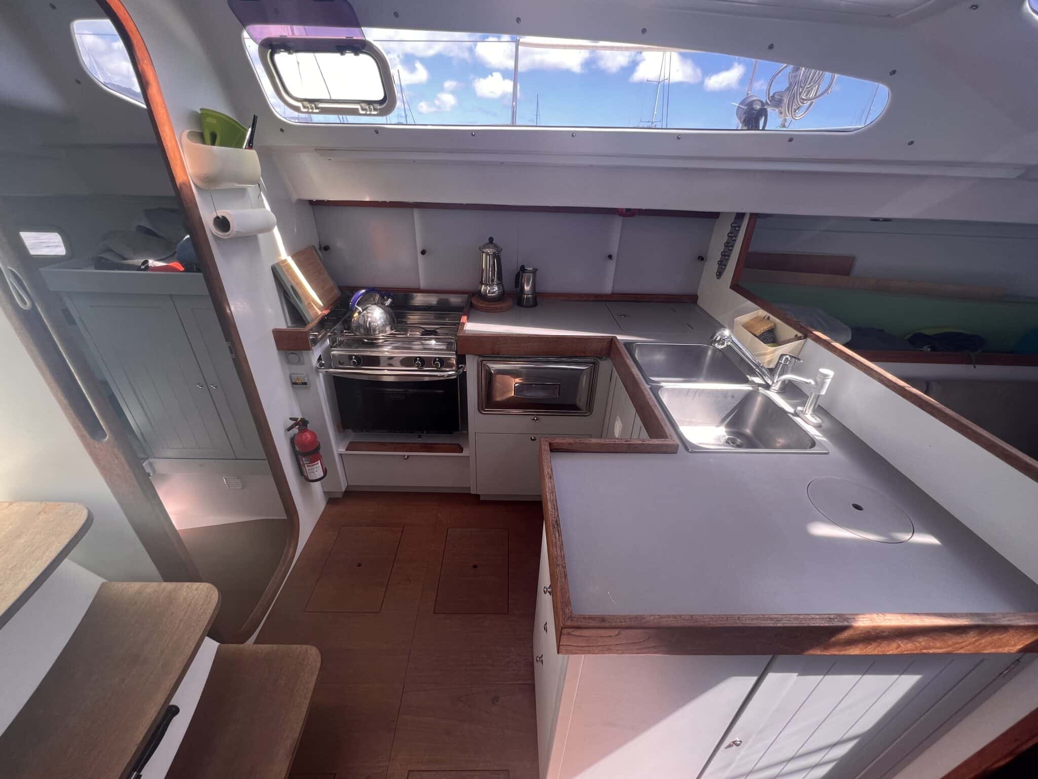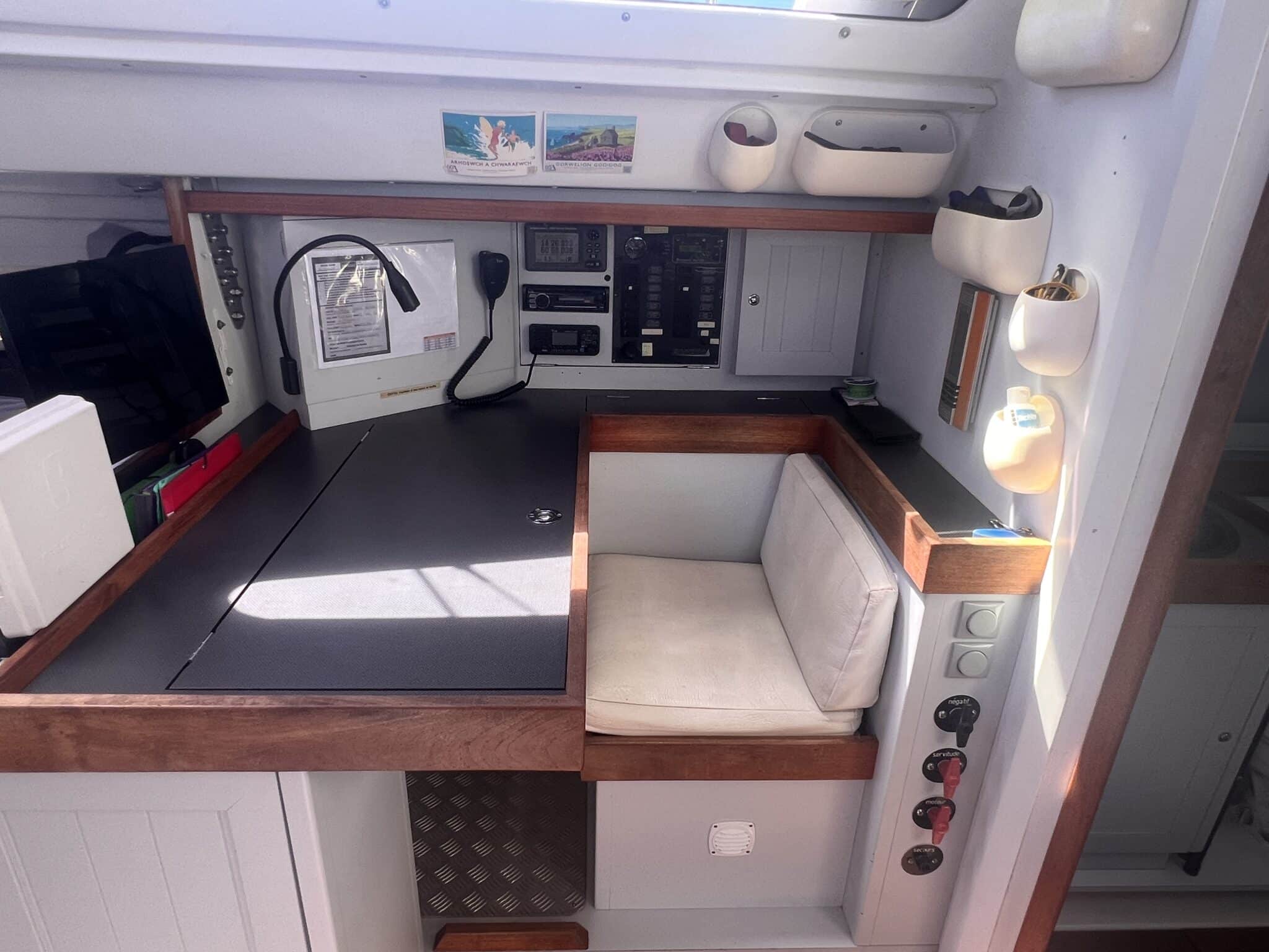 Galley on port side and navstation on starboard side