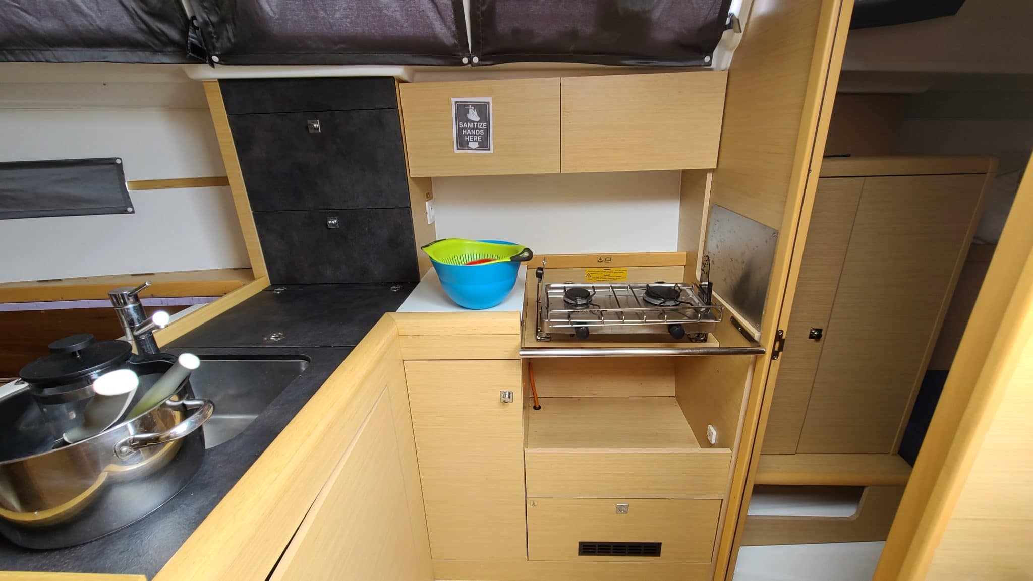 L-shaped galley on starboard side