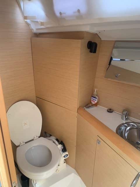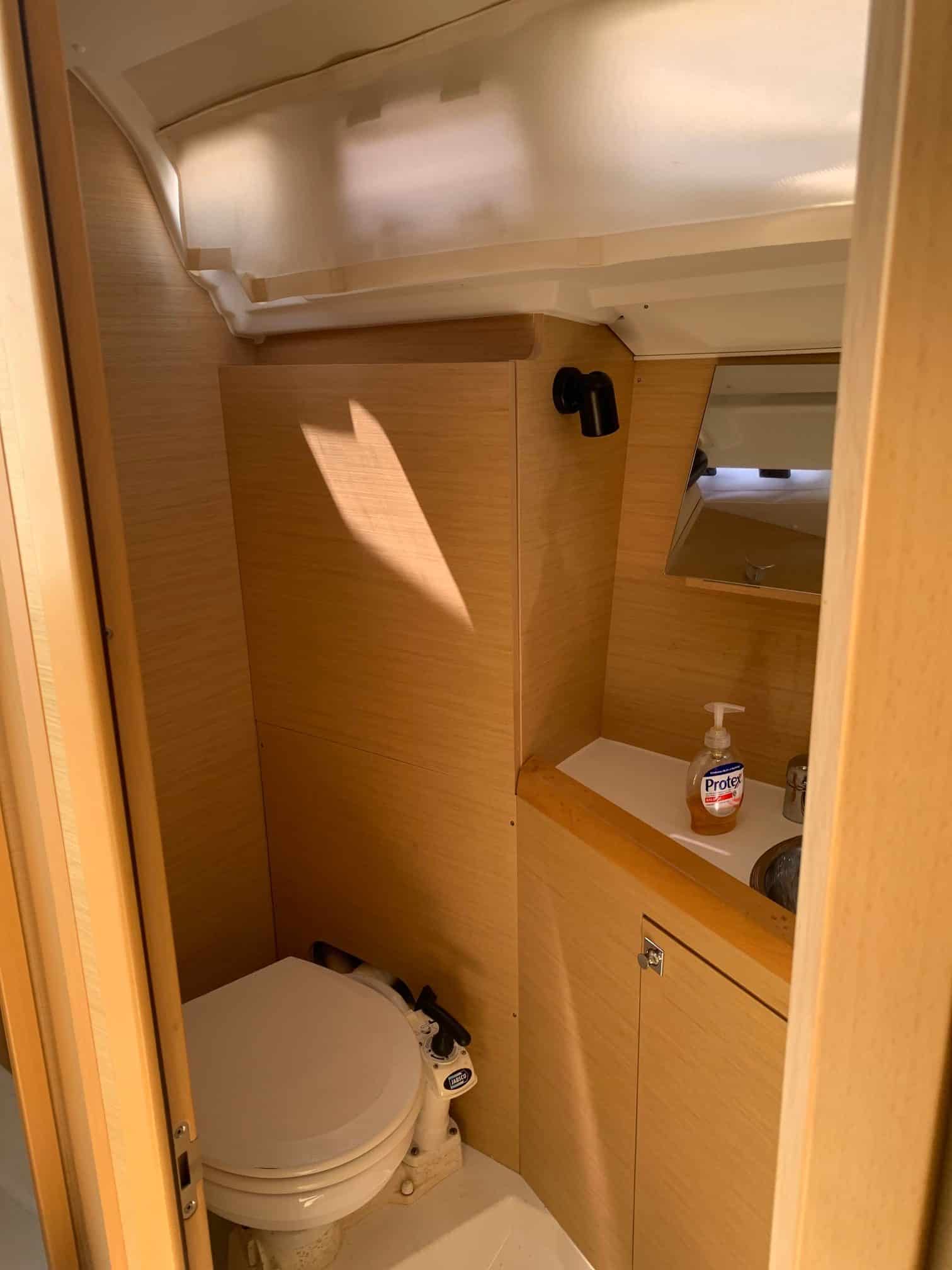 Bathroom on port side with extra porthole