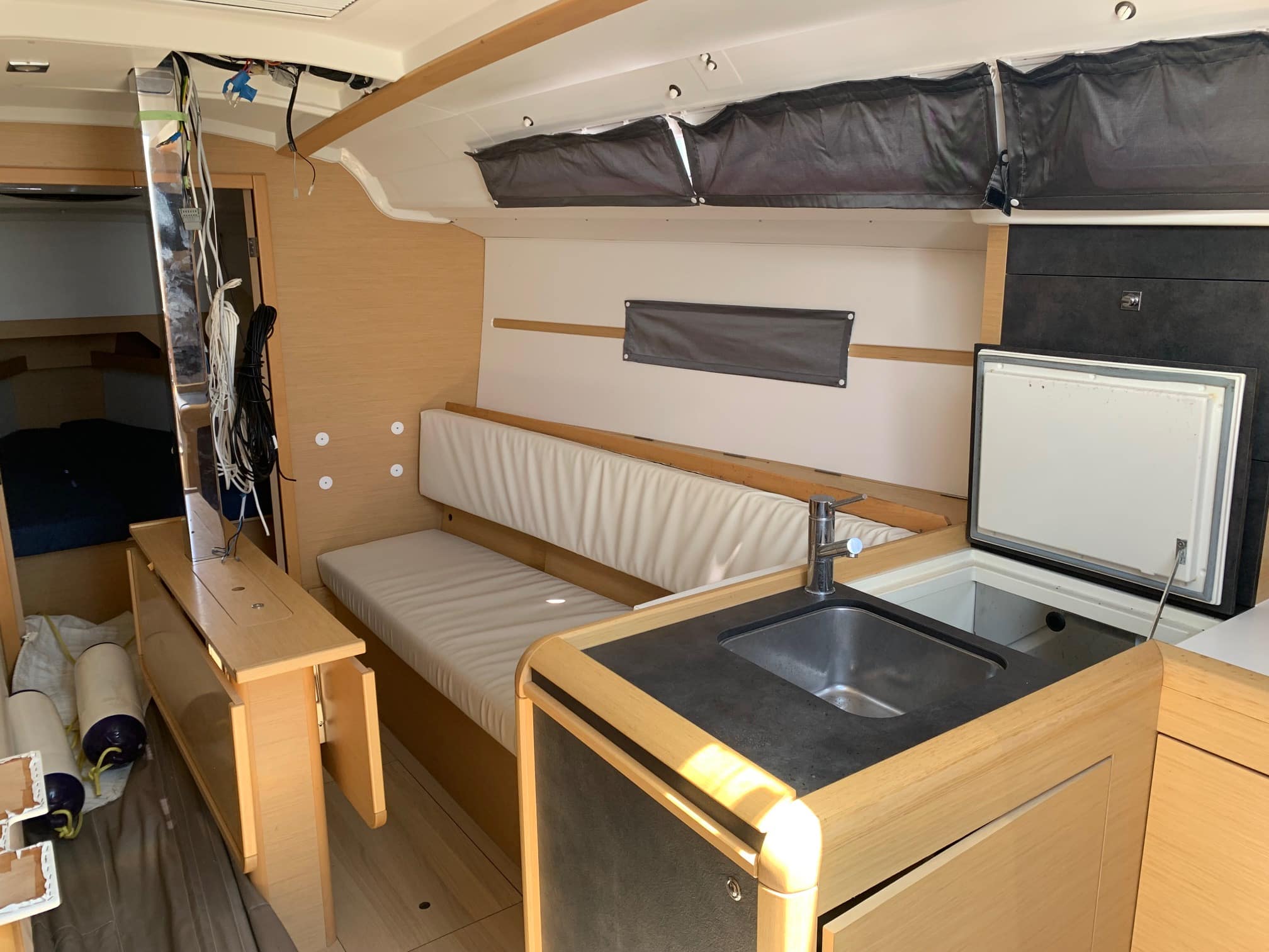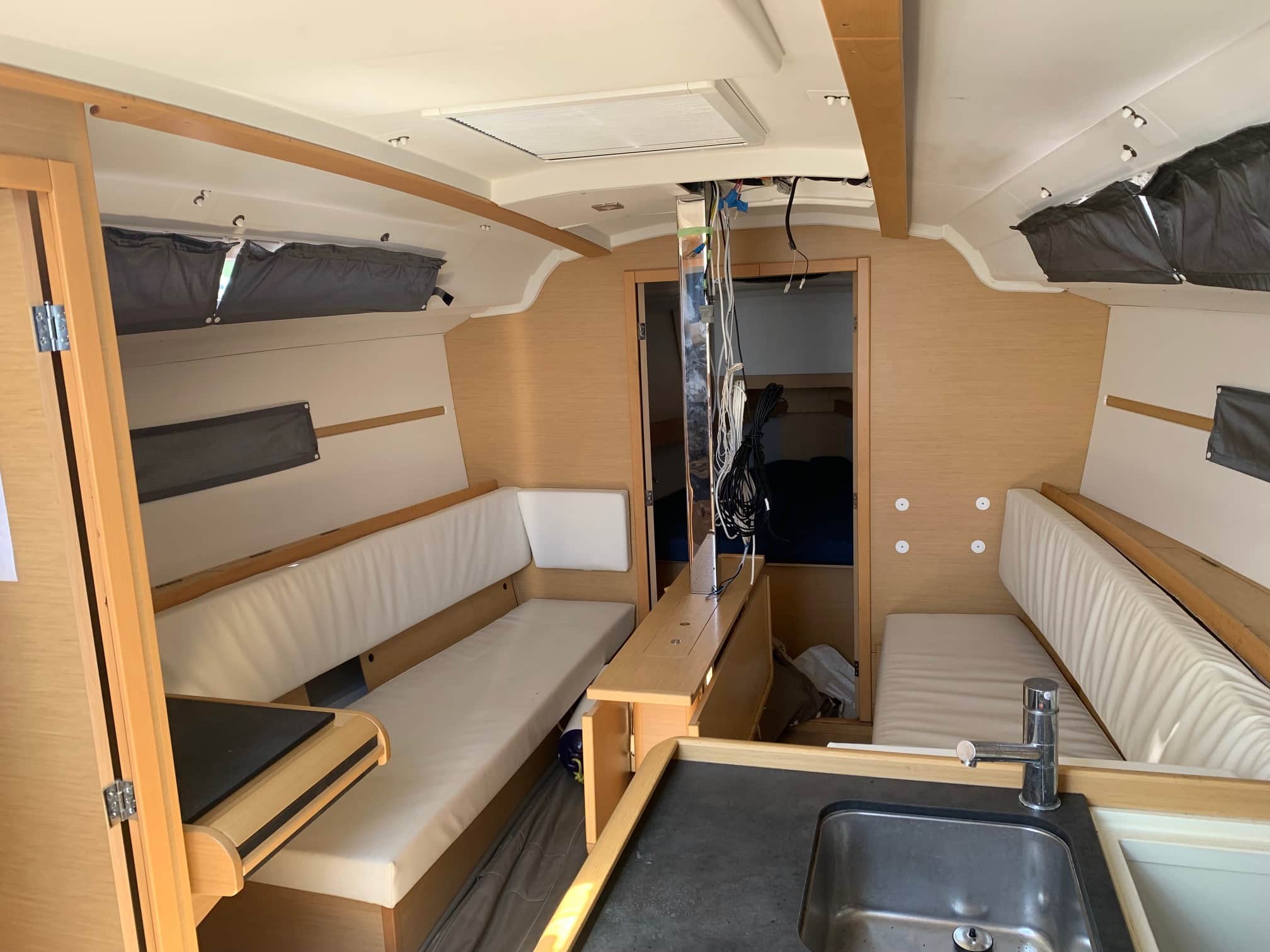 Varnishing and waterproofing work to be done in the starboard saloon.